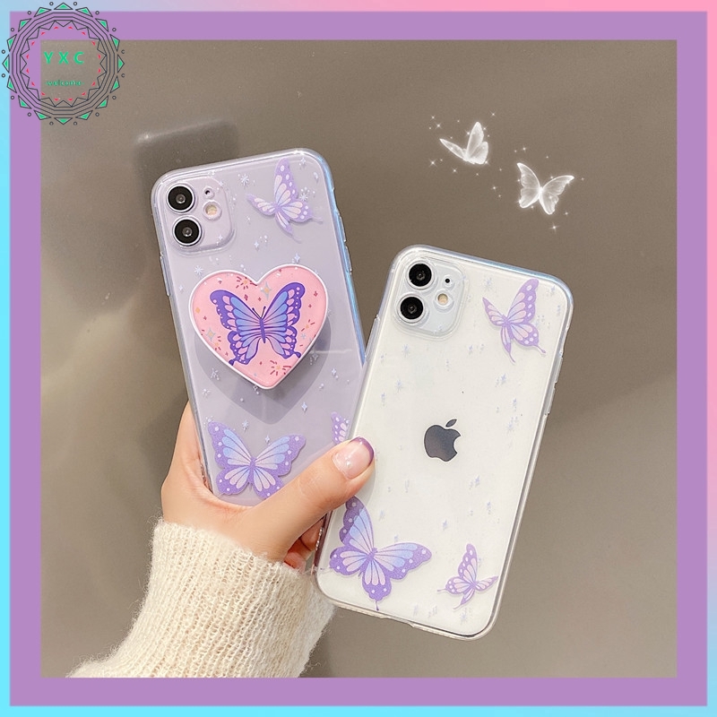 Soft Case Transparan Motif Kupu-Kupu Warna Ungu Untuk